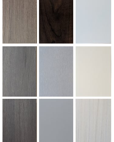 The most popular and economically priced color is white. It is also the brightest and lightest color, white is often the choice for many closets, especially in darker spaces. From the top left to right: Fashionista, Chocolate, Cloud (light gray), Ash, Aluminum, Victorian (cream), First Class, Slate and Arctic.
